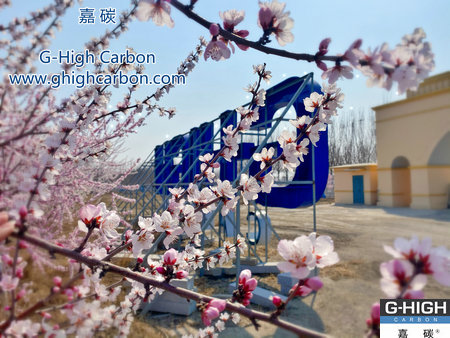 又是一年春來到,嘉碳增碳劑生產(chǎn)車間外,桃花朵朵開。